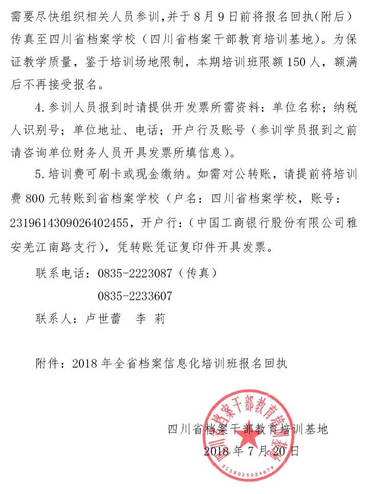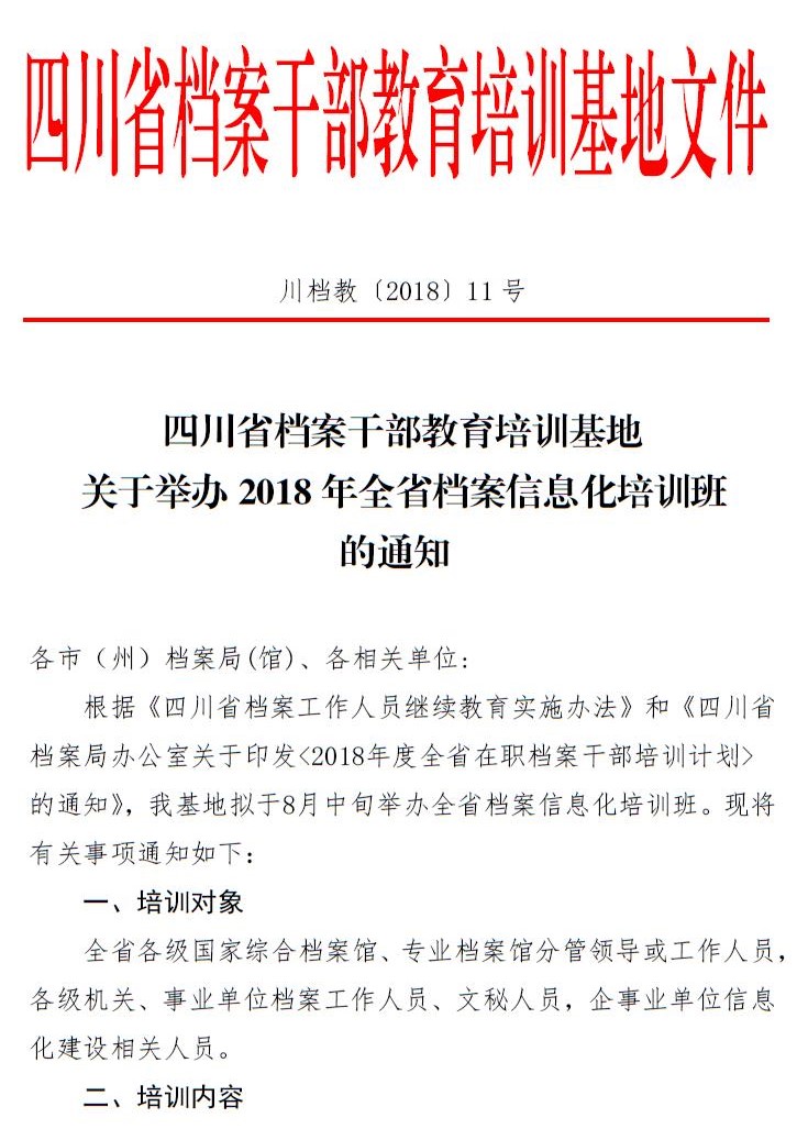 四川省档案干部教育培训基地关于举办2018年全省项目档案业务培训班(第一期)的通知