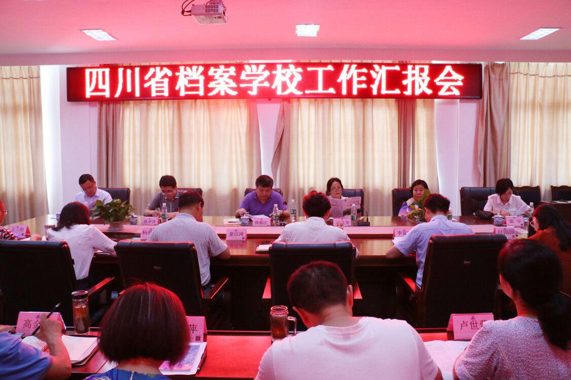 国家档案局下派干部杨梓楠、付园园,四川省档案局宣教处干部雷宇,学校副校长童以鸿,党委副书记、纪委书记李富民及中层干部参加工作汇报会。