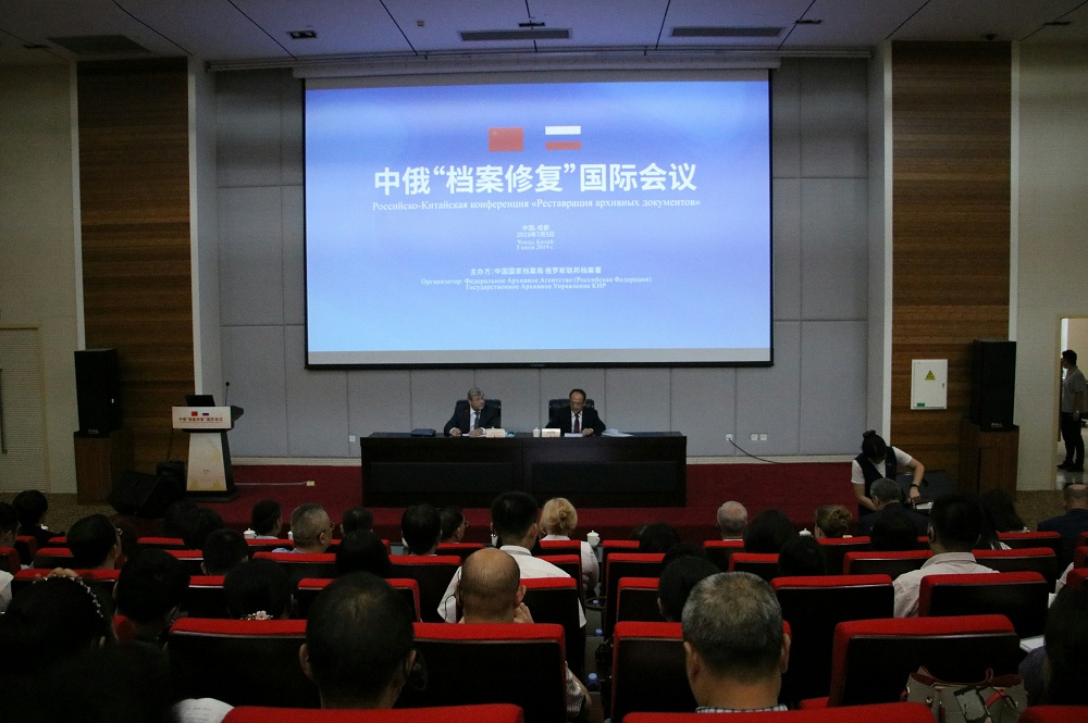 2019年是中华人民共和国成立70周年,也是中俄建交70周年。为了纪念中俄建交70周年,加强中俄两国“档案修复”的交流合作,2019年7月5日,中国国家档案局、俄罗斯联邦档案署联合主办的中俄“档案修复”国际会议在成都市档案馆召开,俄罗斯联邦档案署署长A.H.阿尔基佐夫、国家档案局副局长王绍忠出席了会议。出席中俄档案合作分委会第三次会议的两国成员和全国副省级以上档案局、档案馆代表100余人参加会议。 四川省档案学校作为全国大、中专学校中唯一一所以“档案”命名的学校,并且作为全国高职大专、中专学校中唯一一所开设了“档案管理”专业的学校亮相会议。