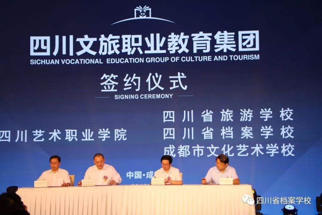 成立大会上,作为集团理事单位之一的四川省档案学校与副理事长单位四川艺术职业学院签署了校校合作协议,双方将在合作办学,实现资源整合共享之外开展深度合作,共同实施以全日制“3+2”五年制大专和“3+3”高职单招大专为基础的中高职衔接和贯通培养,开展职业资格培训考核,实现师资与专业优势互补等。