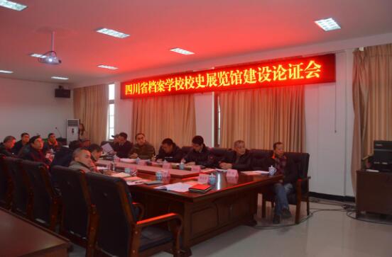 2018年1月19日,四川省档案学校召开校史展览馆建设论证会。四川省档案局宣教处处长高勇,雅安市档案局党组书记、局长陈吉学,市委党研室副主任蓝志斌,四川省档案学校原党委书记、校长郑树君等一行16名领导和专家出席论证会,对学校在建的校史展览馆建言献策。