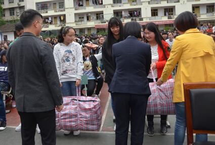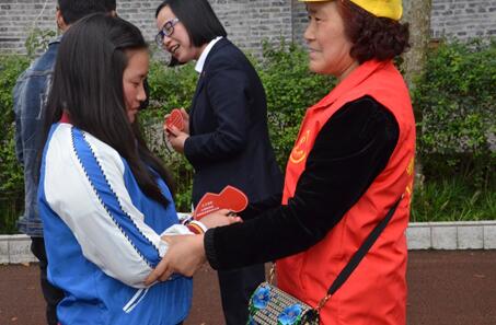 除直接物品捐赠外,在雅安市电视台的热心发动和我校的积极争取下,众多爱心人士自愿与我校受助学生结成“一对一”帮扶关系,为学生提供精神鼓励、人生指引和必要的帮助。活动现场,在主持人杨虎妹引导下,学校受助学生围成圆圈并闭上双眼,待他们睁眼转身后,惊喜地发现了身后如母般的阿姨,如父般的大伯,亦或是两鬓斑白的爷爷,是阳光灿烂的哥哥,是优雅美丽的姐姐……他们笑了,幸福温暖在脸颊洋溢;他们哭了,感恩激动在内心沉淀。受助学生与爱心帮扶人士深情拥抱并互诉知心话,共同执笔在帮扶卡上写下彼此的心愿。