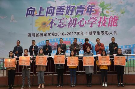2017年3月7日下午,我校举行了以“向上向善好青年,不忘初心学技能”为主题的学生表彰大会。会议邀请了雅安市教育局、雅安市民宗局、雅安市慈善总会等单位的校外领导及54名学生家长参会。