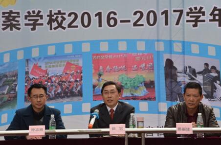 表彰大会由校党委副书记、纪委书记、副校长张其可主持。隆重的升旗仪式后,雅安市教育局安全教育科副科长钟志班、雅安市民宗局副局长熊福建分别为学校颁授了“全国国防教育特色学校”及“四川省民族团结示范学校”牌匾。接着,副校长童以鸿宣读了2016-2017学年上期受表彰的先进班集体、优秀学生、优秀学生干部、优秀纠察队员、文明寝室。