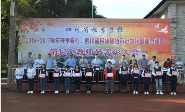 9月9日上午,四川省档案学校隆重举行2016-2017学年开学典礼暨四川省民族团结示范学校创建启动和32个教师节表彰大会。四川省档案局副局长周书生,雅安市教育局副局长王瑞华,雅安市民宗局副局长熊福建等领导出席会议。