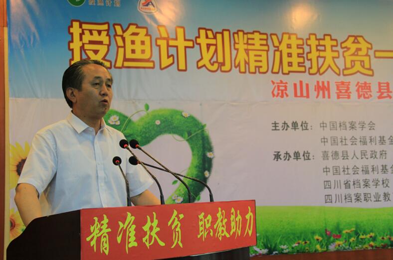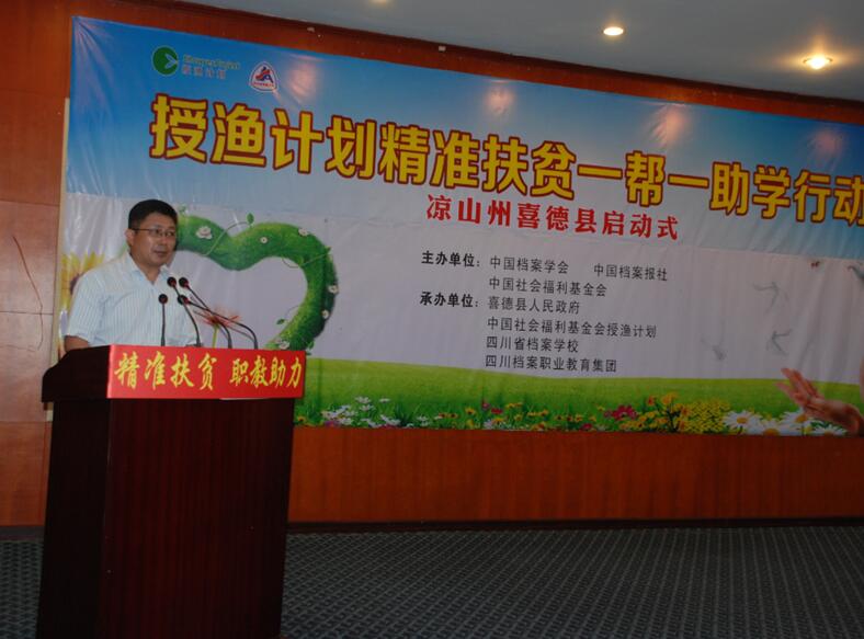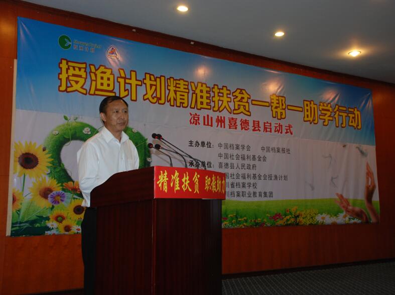 6月19日,国家档案局局长、中央档案馆馆长李明华出席由四川省档案学校发起和承办的“授渔计划精准扶贫一帮一助学行动”凉山州喜德县启动式。