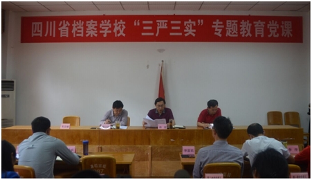 5月26日下午14:30,我校在学校会堂召开了四川省档案学校“三严三实”专题教育党课。全校100余名教职工参加了会议,会议由学校党委副书记、副校长张其可同志主持。