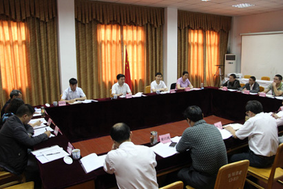 丁成明一行在察看校园建设后听取了学校工作情况汇报。