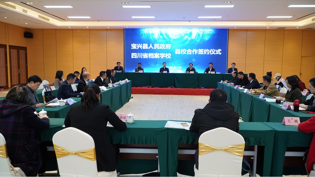 2021年3月19日下午,宝兴县人民政府与四川省档案学校县校合作签约仪式暨座谈会学校继续教育大楼二楼大会议室举行。中共宝兴县委书记冯俊涛,中共宝兴县委副书记、县长罗显泽,省档案馆信息技术处处长学校党委书记、校长徐宏出席仪式并讲话。会议由宝兴县政协主席朱和超主持。