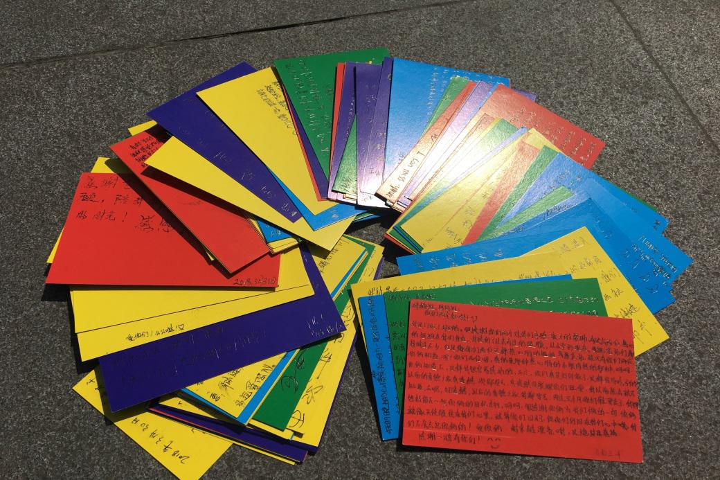 彩色的卡片,盛开的心怀。“感谢你们的关心、关爱和无微不至的体贴,想着我们喝水没水杯、下雨没伞打……”“感谢爱心人士关心爱护着我们,千言万语道不尽,爱你们!”“送棉衣给我们温暖,让我们感到了这个世界有爱的存在……”孩子们的语言是那样的质朴和令人动容!