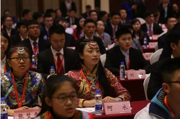 19:30,“中国梦・学子梦‘青春・责任・担当’”四川省学生联合会第十次代表大会主题分享会上,阿衣在现场认真聆听先进人物事迹。
