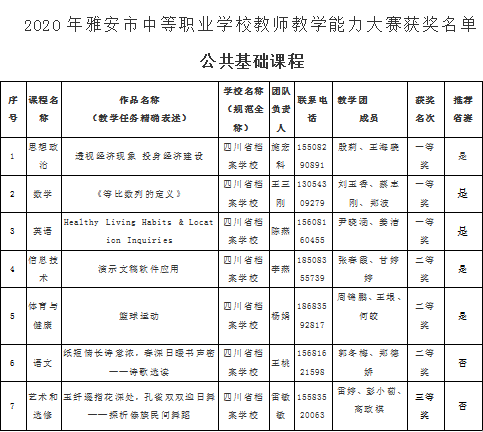 2020年雅安市中等职业学校教师教学能力比赛首次以团队参赛的方式进行,是对学校教师团队的综合能力水平的考验。从人培方案、课程标准到教学设计、教学实录,再到教学实施报告,综合性高、要求完整的比赛内容不仅检验了我校教师的教学能力水平,也展现了我校教师的团队协作能力。