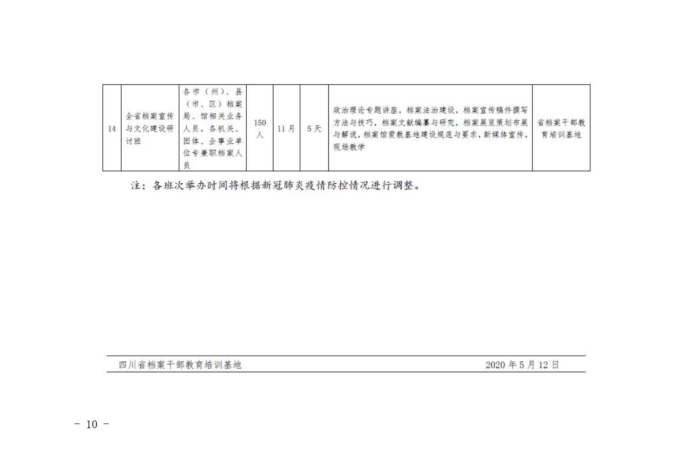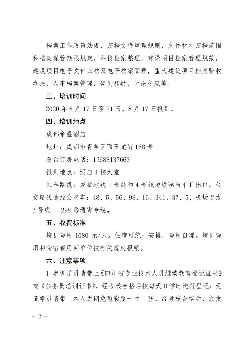 四川省档案干部教育培训基地关于举办2020年全省项目档案业务能力提升班的通知