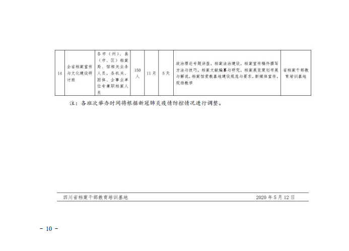 四川省档案干部教育培训基地关于举办2020年全省项目档案业务能力提升班的通知
