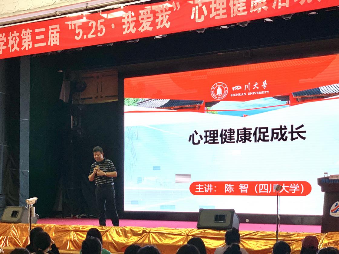 为进一步加强学校心理健康教育工作,提高师生心理健康素质,增强老师和同学们的心理调控能力,5月22日,学校诚邀了四川大学应用心理与心理健康研究所所长、高级心理咨询师――陈智教授,在学校大礼堂为全校师生开展了两场心理健康教育专题讲座。