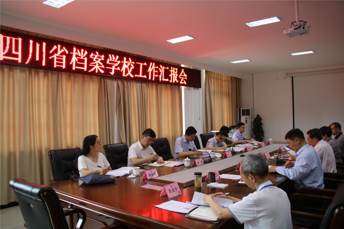 随后,在综合楼五楼大会议室听取了学校工作汇报。祝云馆长对学校优美古朴的校园环境、师生朝气蓬勃的精神面貌、教育教学有序开展、近年来的快速发展和取得的成绩进行给予了高度的评价,他谈到,四川省档案学校的独特性决定着学校的发展将会越来越好。对学校今后的工作祝馆长提出:一是要提高教学水平。学校要在教学和人才引进上下功夫,提高教学水平,将学校办好、办久、办出生命力;二是要加强学校管理。在学生、后勤、设施设备等利用方面加强管理,让所有的优良资源高效运转、充分利用;三是支持学校提升办学层次,创建高职院校。祝云馆长表示四川省档案馆将全力支持学校开展工作,特别是在学校提升办学层次上,将深入研究学校提出的发展建议。最后他希望中层干部、老师们继续团结一致、上下同心、尽心尽力做好工作,早日建成省级“双示范”学校。