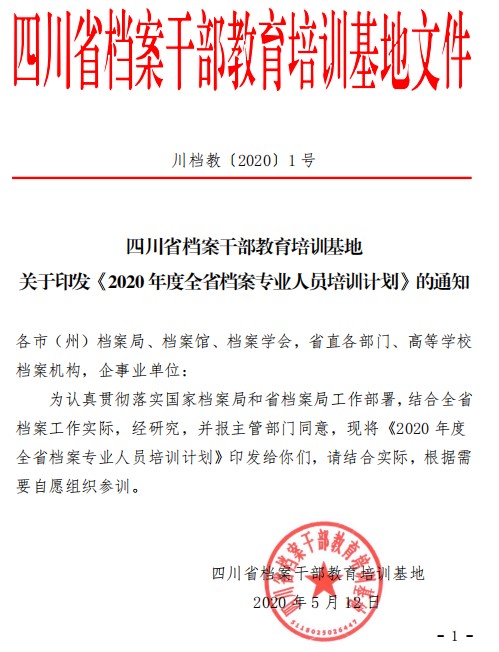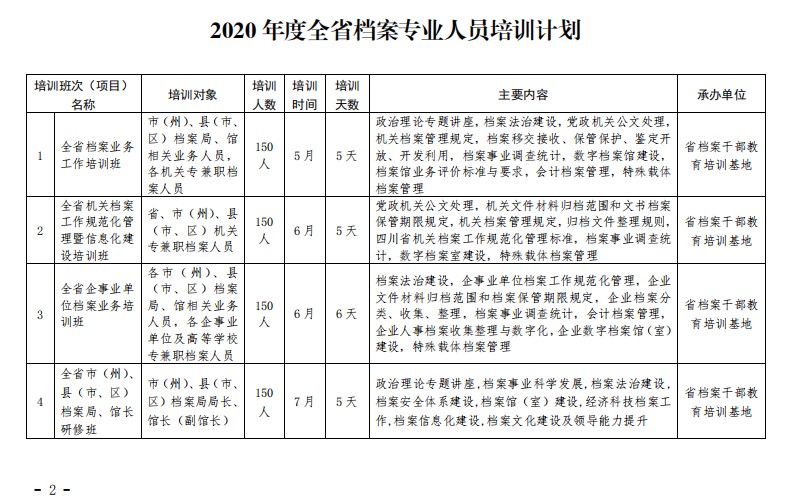关于印发《2020年度全省档案专业人员培训计划》的通知