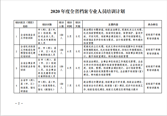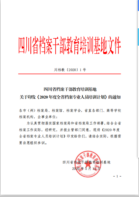 四川省档案干部教育培训基地关于印发《2020年度全省档案专业人员培训计划》的通知