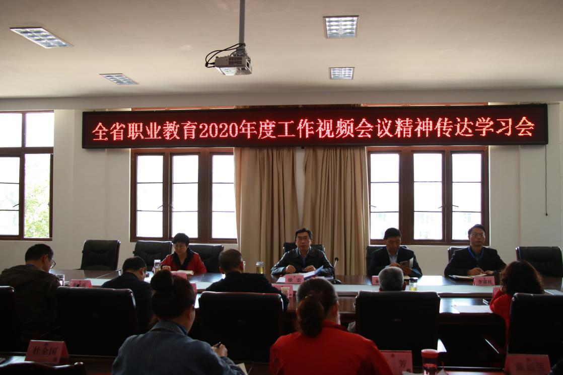 会上,学校党委书记、校长徐宏介绍了2020年全省中等职业教育工作视频会议内容,传达了省委教育工委委员、教育厅党组成员、副厅长张澜涛,以及省教育厅职业教育处处长宋亚兰的重要讲话精神,并系统全面地组织学习了会议内容。