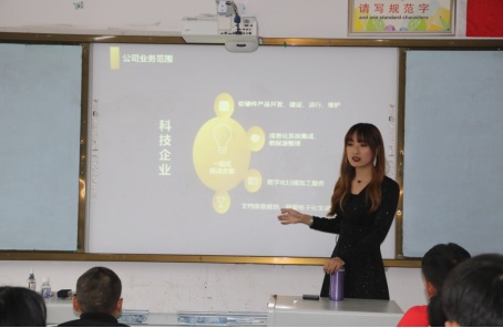 首先,朱彬川老师向学生简要介绍我校拟建订单班级的情况。然后,潘可玲经理着重介绍资和信科技有限公司的企业成就、人才培养方向以及订单班的具体要求;各位老师给学生答疑。最后,黄皓老师就校企合作的合作点进行总结,并动员学生踊跃报名,积极加入订单班的选拔。