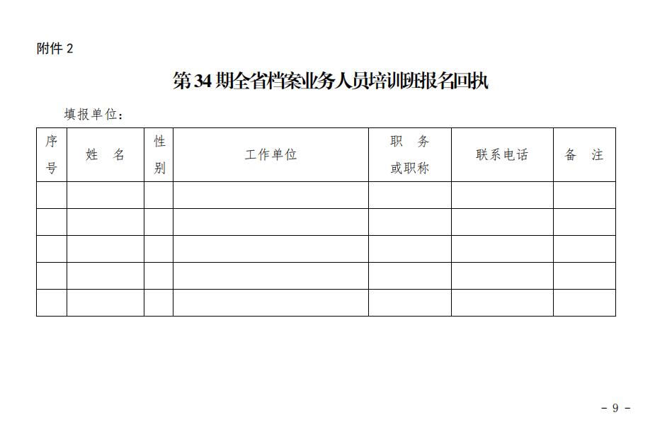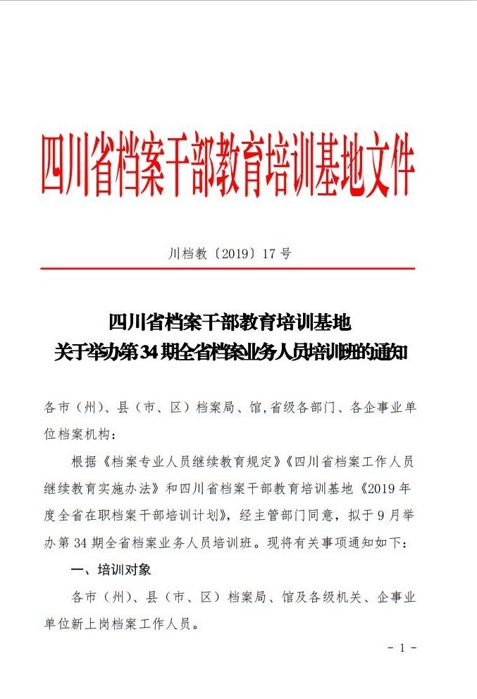 第34期全省档案业务人员培训班的通知