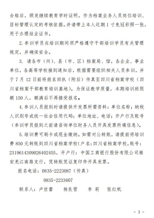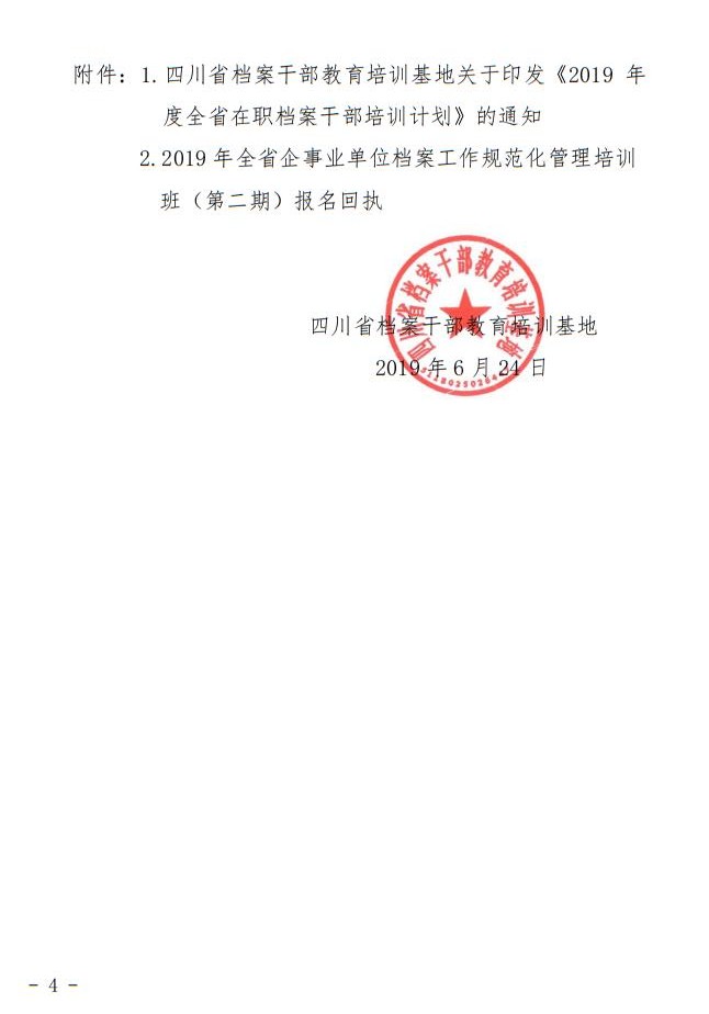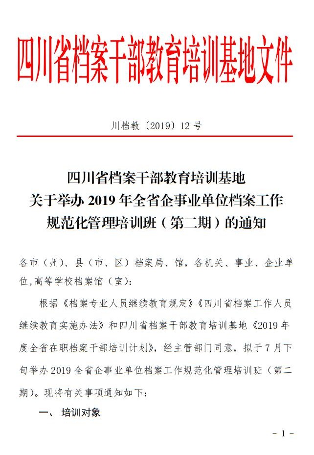 四川省档案干部教育培训基地关于举办2019年全省企事业单位档案工作规范化管理培训班(第二期)的通知