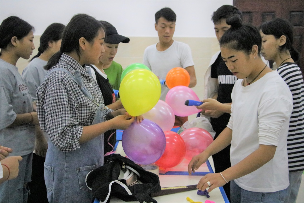 经过一个多小时的劳动,包粽子环节结束。随后,学生科组织全体师生前往第三食堂二楼就坐,在免费发放饮料和瓜子等零食后,活动进入游戏互动环节。该环节由校团委宣传部策划主持,组织开展了两轮20组“二人组合踩气球”游戏,该游戏中的胜出者每人可奖励一瓶饮料,淘汰者则通过转转盘的方式定惩罚,惩罚包括唱歌跳舞、爱的魔力转圈圈、我说你做、吃柠檬四种。学生们踊跃参与,玩得十分愉快。