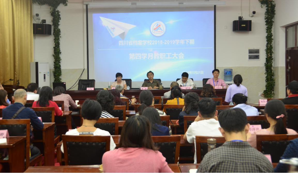 5月21日,四川省档案学校召开2018―2019学年下期第三学月教职工大会。