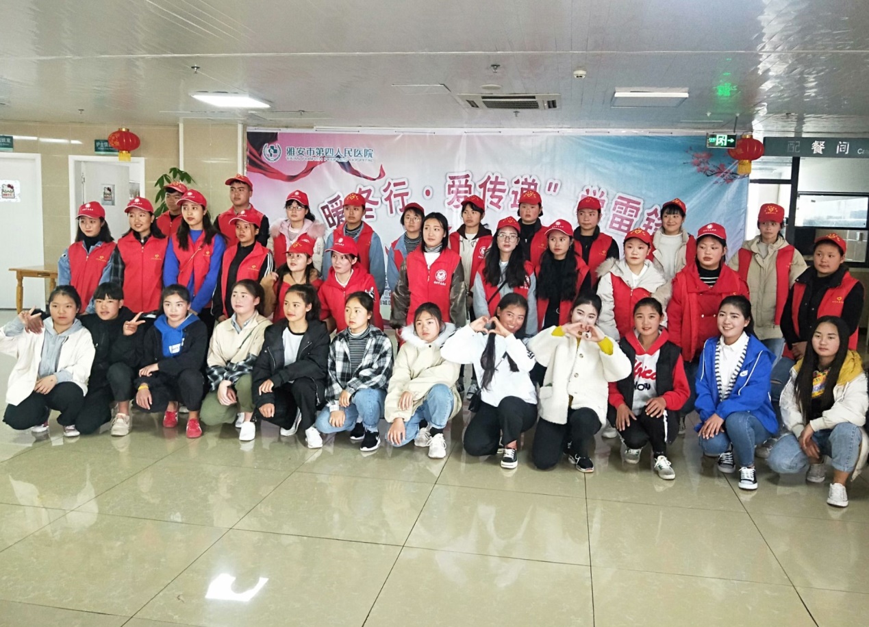 在雅安市第四人民医院主办的“暖冬行•爱传递”学雷锋志愿服务活动中,首先,学校师生志愿者和其他爱心单位以及部分医务人员参加了“关爱精神病人”的爱心捐赠仪式。接着,以“暖冬行・爱传递”主题的文艺汇演在康养中心六楼大厅举行,我校学生表演的民族舞蹈《畲山春》赢得了在场老年人们的阵阵掌声;最后,我校的志愿者加入到了陪护老人的队列中,在得知志愿者们前来看望时,老人们都十分开心。他们有的陪护老人回病房,有的牵着老人的手拉家常,大家在一起亲切的交流,互致祝福。