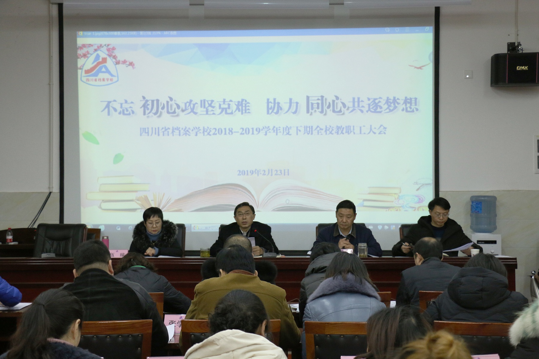 瑞犬辞旧岁,金猪送福来;人勤春来早,万事日相催。为确保新学期工作平稳有序推进,2月24日下午,四川省档案学校召开2018―2019学年下期全校教职工大会。