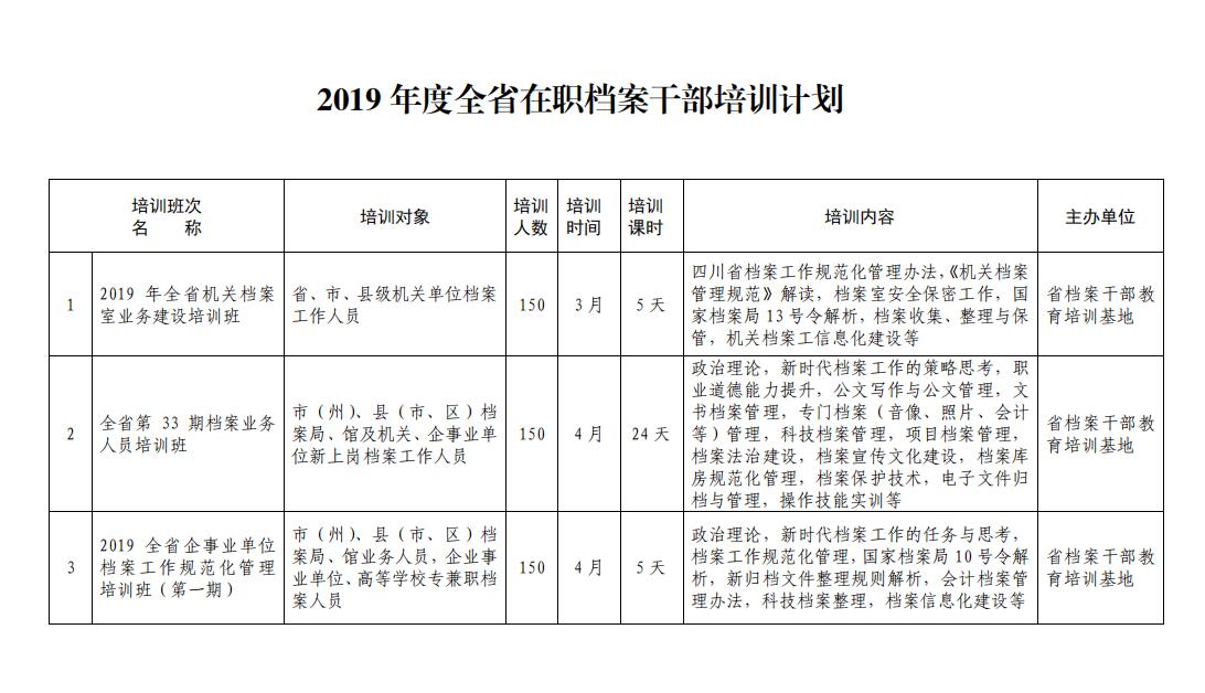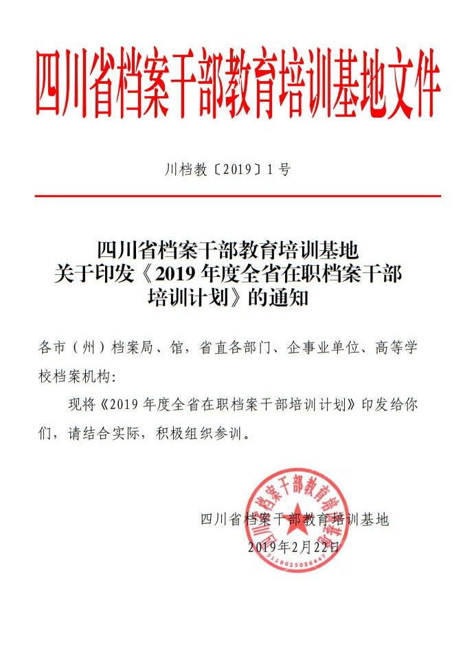 四川省档案干部教育培训基地关于印发《2019年度全省在职档案干部培训计划》的通知