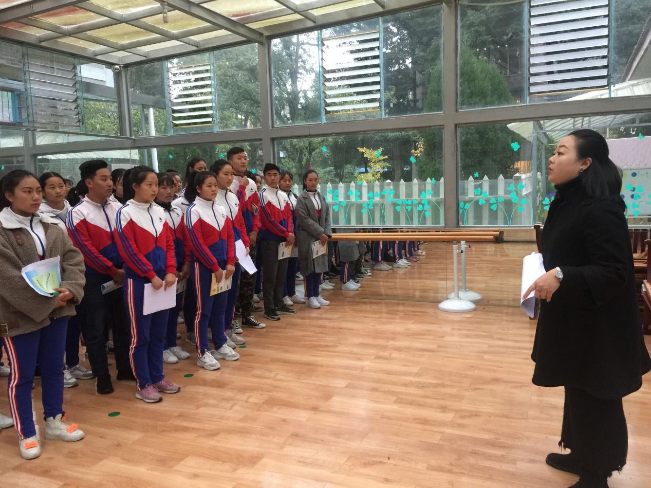 在实习之前,教务科组织首批实习的班级召开了动员大会。会上,我校学前教育专业教师冉永蓉为学生们讲解了幼儿园一日常规,雷敏敏老师给同学们提了实习相关要求。