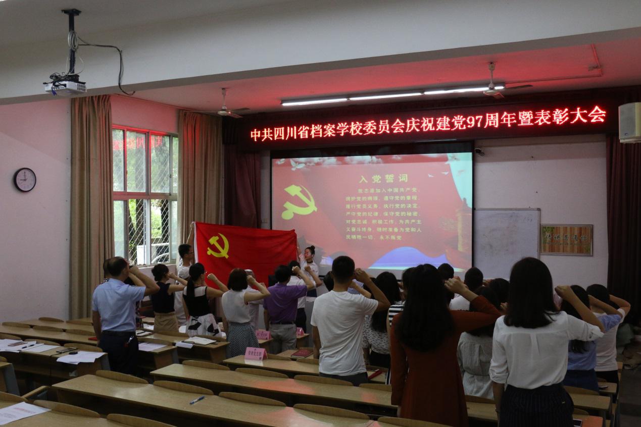6月29日,四川省档案学校召开“庆祝建党97周年暨2017-2018年度优秀共产党员、优秀党务工作者、先进党支部表彰大会”。