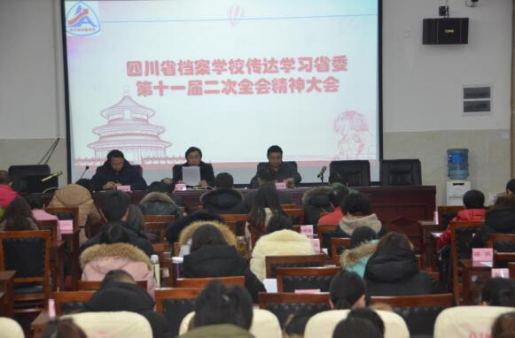2018年元月3日,四川省档案学校召开全校教职工大会,传达学习省委第十一届二次全会精神。学校150余名教职工参加大会。
