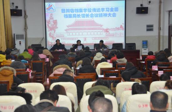 2018年元月3日,四川省档案学校召开全校教职工大会,传达学习全国档案局长馆长会议精神,重点学习了国家档案局局长李明华在会议上的重要讲话以及四川省档案局党组书记、局长高山在省档案局传达学习会议上的重要讲话。四川省档案学校全体教职工150余人参加大会。