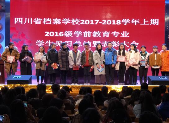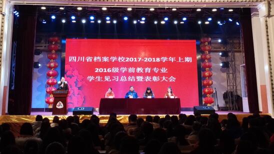 2017年12月26日,我校在大礼堂举行了2017-2018学年上期2016级学前教育专业学生见习总结暨表彰大会。