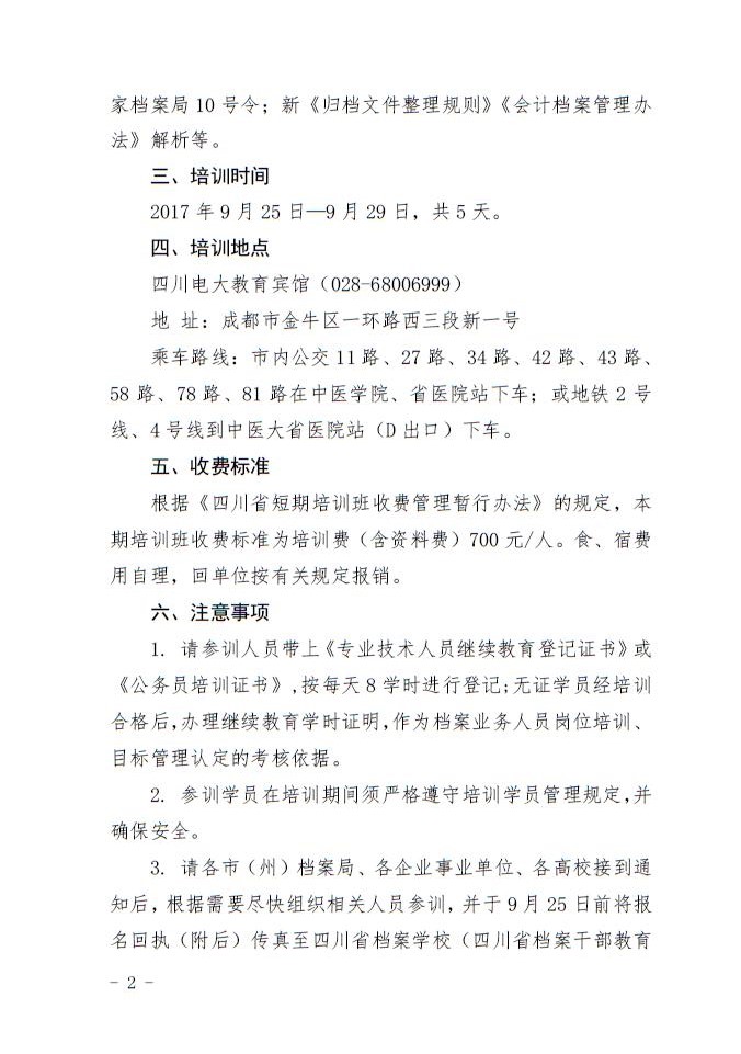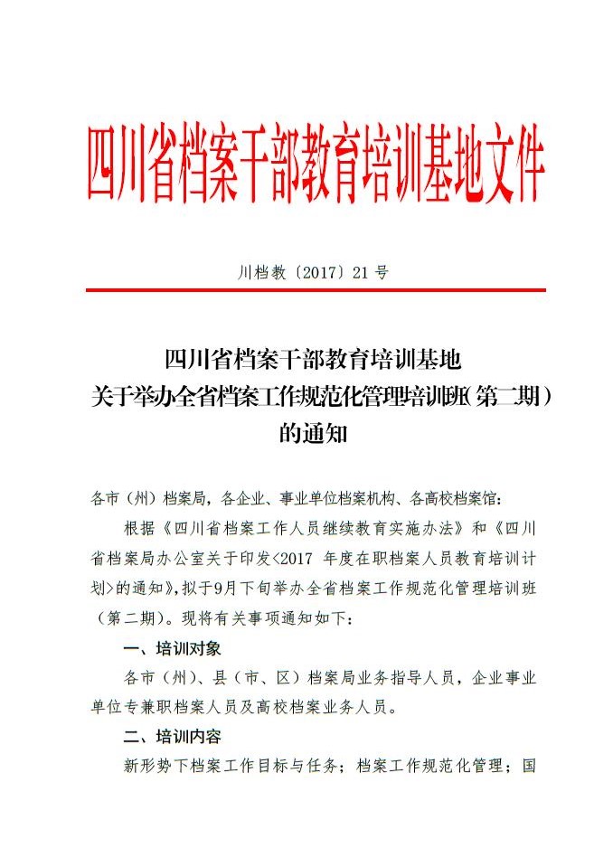 关于举办全省档案工作规范化管理培训班(第二期)的通知