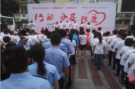今年的6月14日是第14个世界献血者日,主题是“我能做什么 ”,口号是“献血,现在献血,经常献血”。为感谢和表彰献血者和志愿者为无偿献血事业所做出的爱心奉献, 6月13日上午,我市在吉选超市广场举办了2017年“世界献血者日”系列宣传活动。学校15名青年志愿者参加该活动。