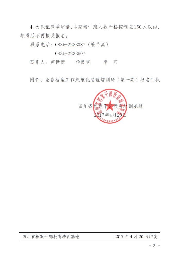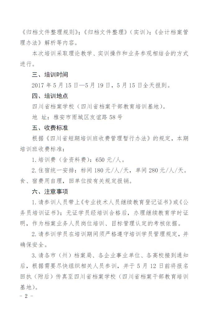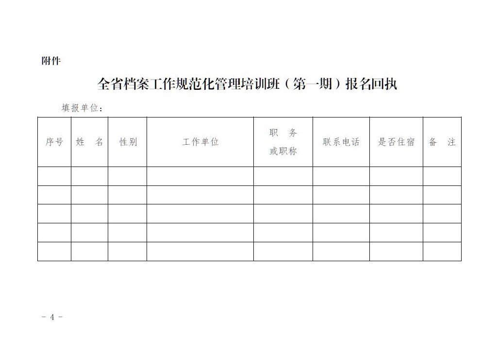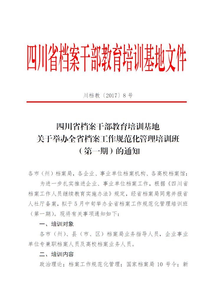 关于举办全省档案工作规范化管理培训班(第一期)的通知