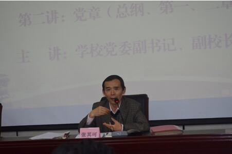 为提高我校入党积极分子党性修养,端正其入党动机, 我校举办了第三十期业余党校培训班。4月10日晚,培训班第二讲在综合楼阶梯教室举行,由学校党委副书记、纪委书记、副校长张其可主讲。
