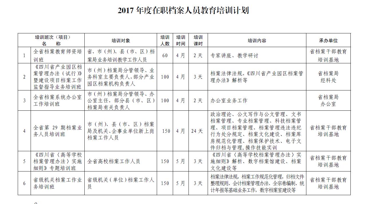 四川省档案局办公室关于印发《2017 年度在职档案人员教育培训计划》的通知