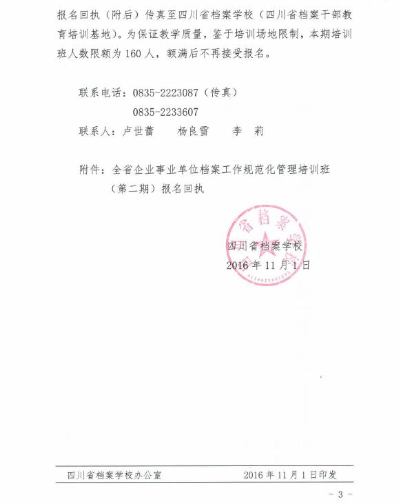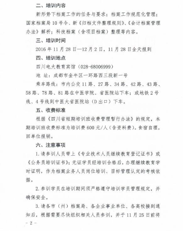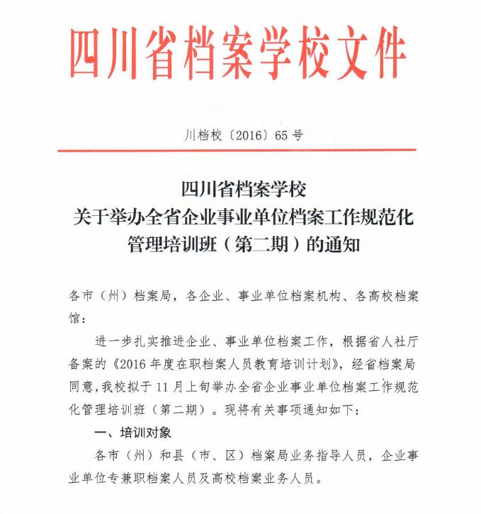 关于举办全省企业事业单位档案工作规范化管理培训班(第二期)的通知