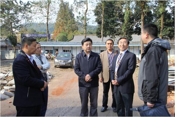 在学校继续教育大楼施工现场,丁局长仔细询问了学校灾后恢复重建的有关情况。