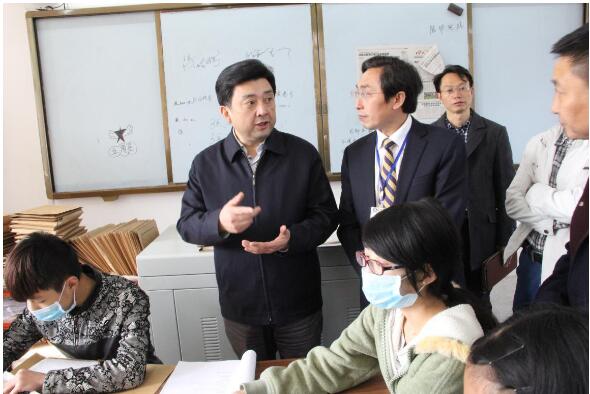 在学校档案管理专业实训基地,丁局长细致了解档案管理专业学生学习及就业情况。他说,档案管理专业是学校的重点专业,要充分发挥自身优势,进一步加强优势学科建设。