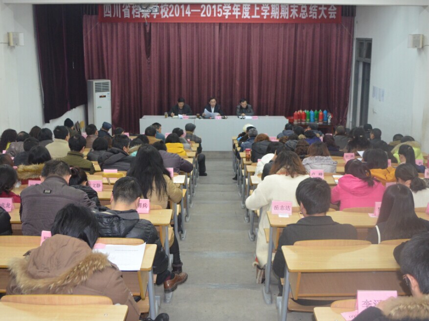 2015年1月15日下午14:30 ,我校在阶梯教室组织召开2014-2015学年度上期期末总结大会。大会由学校副党委书记、副校长张其可主持,全体在岗、离退休教职工参会。