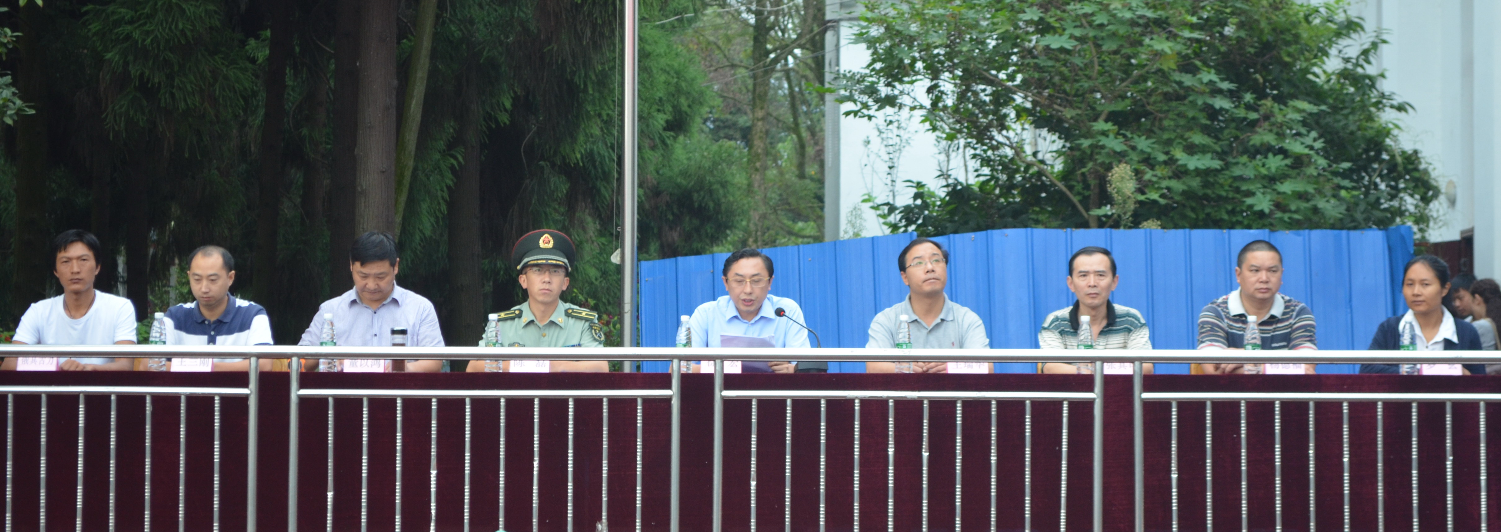 上午8:00在学校塑胶球场隆重举行了2014级新生军训开训仪式。雅安市教育局副局长王瑞华,学校党委书记、校长徐宏,中国人民解放军78511教导队队长陈磊及学校相关领导出席开训仪式。参训教官、各班主任老师、2014级全体新生与会。大会由学校副校长童以鸿主持。