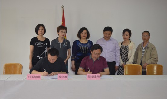 2014年4月17日,我校与双流县档案局(馆)共建教学基地正式签约授牌。双流县档案局副局长徐华德、局党组成员钟世林、信息技术科科长彭芳、利用编研科科长唐秀梅、信息技术科副科长彭忆及我校校长徐宏、副校长童以鸿、教务科科长李萍、灾后重建办主任高金宇出席本次授牌仪式。