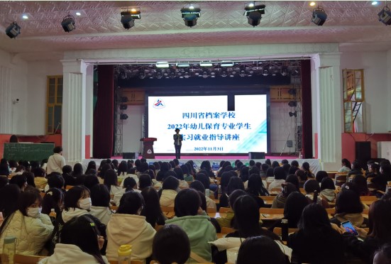 为了让学生更好的了解实习就业形势,做好实习就业准备工作,引导学生树立正确实习就业观。11月3日下午,学校在大礼堂组织开展2022年幼儿保育专业学生实习就业指导讲座,本次讲座特邀雅安市实验幼儿园教育集团总园长田川园长主讲,2020级、2021级幼儿保育专业全体学生聆听了此次讲座。