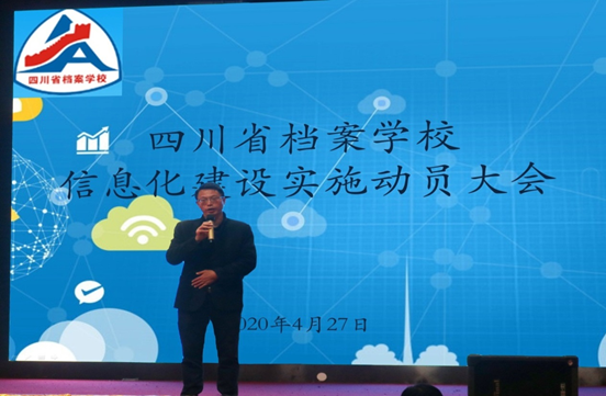 为加快学校信息化建设实施进度,实现学校的管理及教育教学 “互联网+教育”的大平台升级,2020年4月27日在学校大礼堂举行了信息化实施动员大会;会议由图文信息中心副主任杜全国主持。